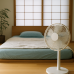 扇風機は壁や天井に向けて風を拡散させることで、冷えすぎを防ぎつつ空気の流れを作るのがポイントです。